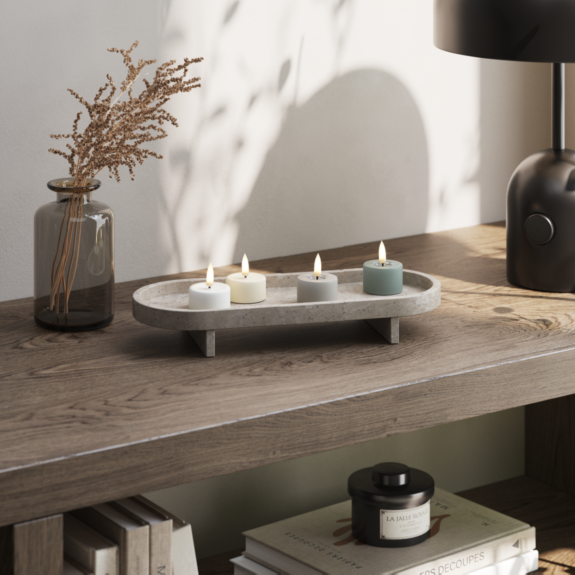 Нашите свещи са внимателно проектирани с горна част от смола, която създава автентичен ефект, сякаш свещите са горяли известно време. Тази специална характеристика прави нашите свещи невероятно реалистични, особено когато пламъкът хвърля топлата си светлина върху повърхността на смолата.