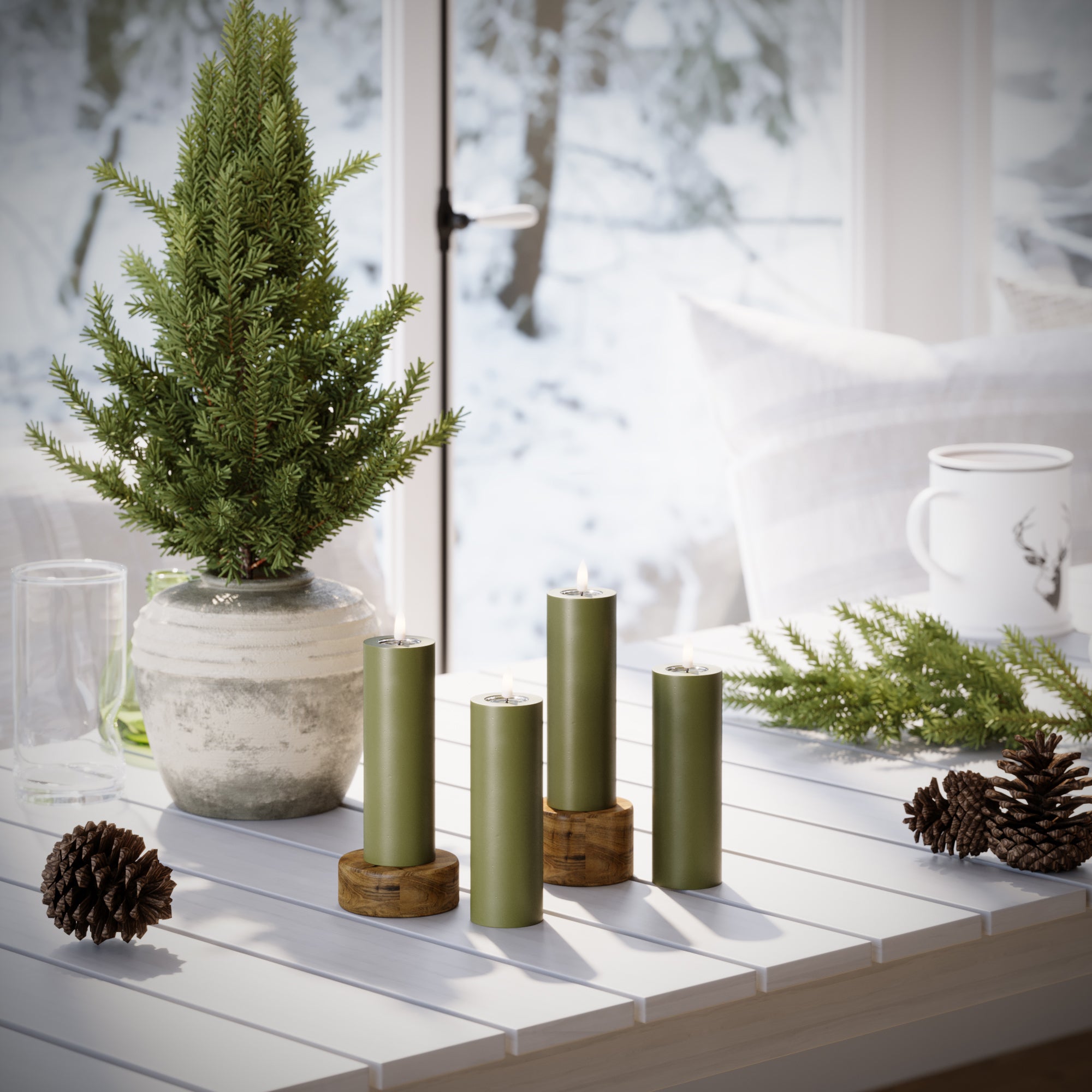 LED-Blockkerzen Ø 5 x 15 cm Olivgrün – 4 Stück