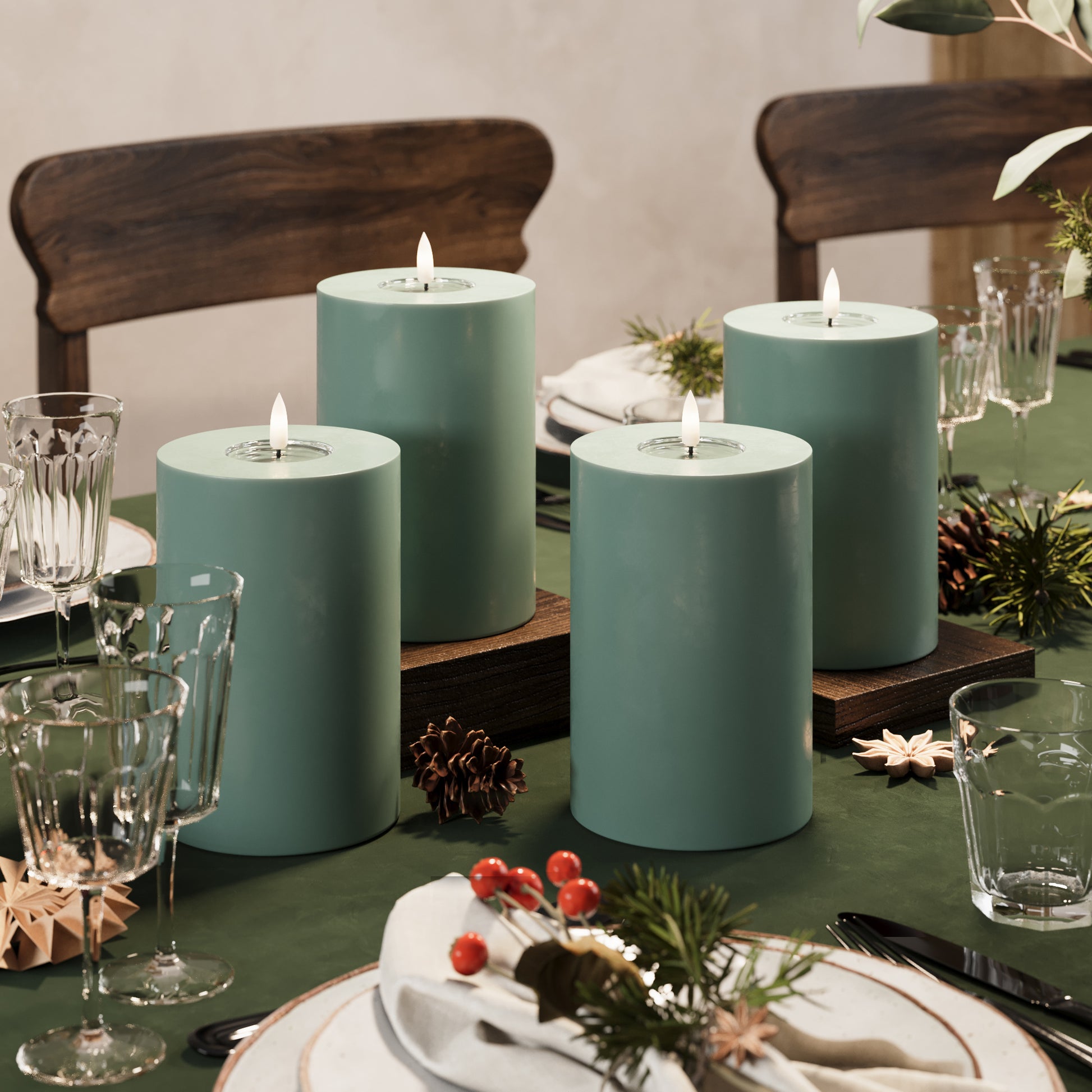 Φώτα μπλοκ LED Ø 10 x 15 cm Πράσινο του νεφρίτη - 4 τεμ.