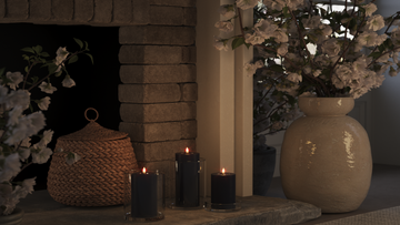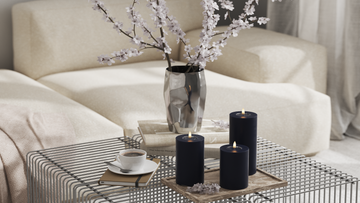 Brug bloklys i små grupper med forskellige højder. Det giver dybde og et gennemført udtryk i indretningen.
