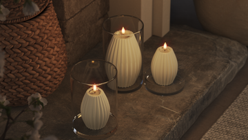 Rillelys passer godt sammen med glatte lys. Brug dem i samme farveskala for et harmonisk udtryk.