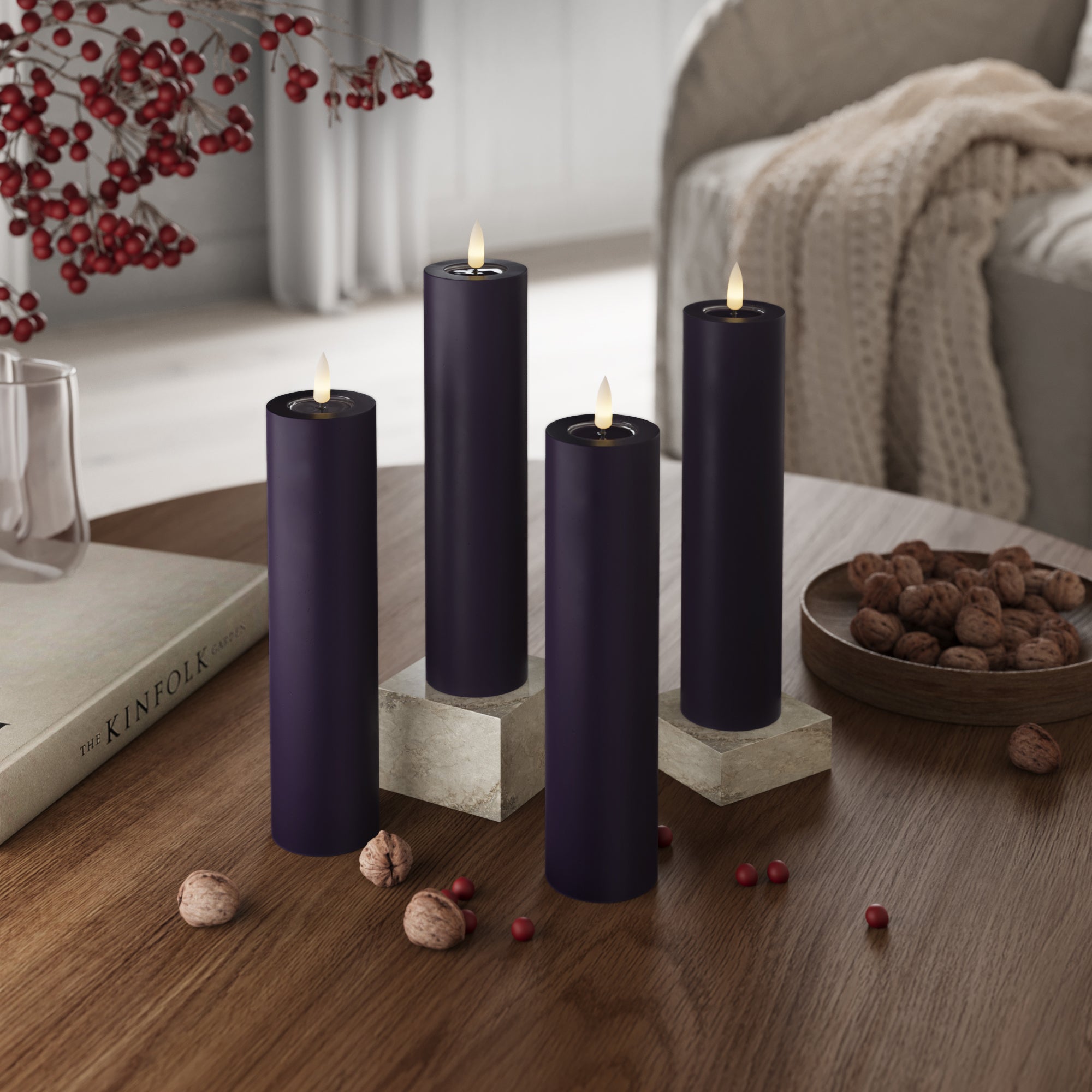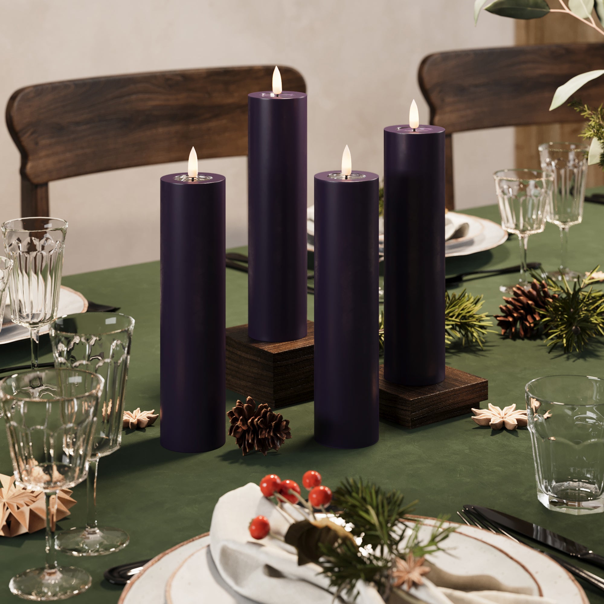 LED Pylväskynttilä Ø 5 x 20 cm Tummanvioletti - 4 kpl