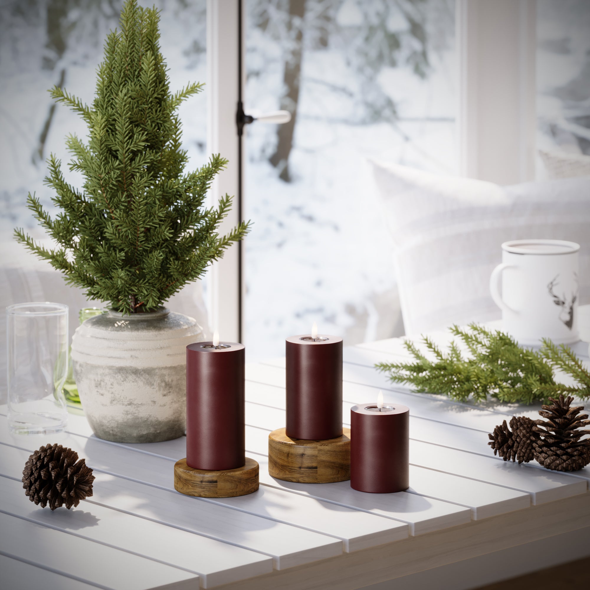 LED Pylväskynttilä Ø 7,5 x 10 + 12,5 + 15 cm Burgundi