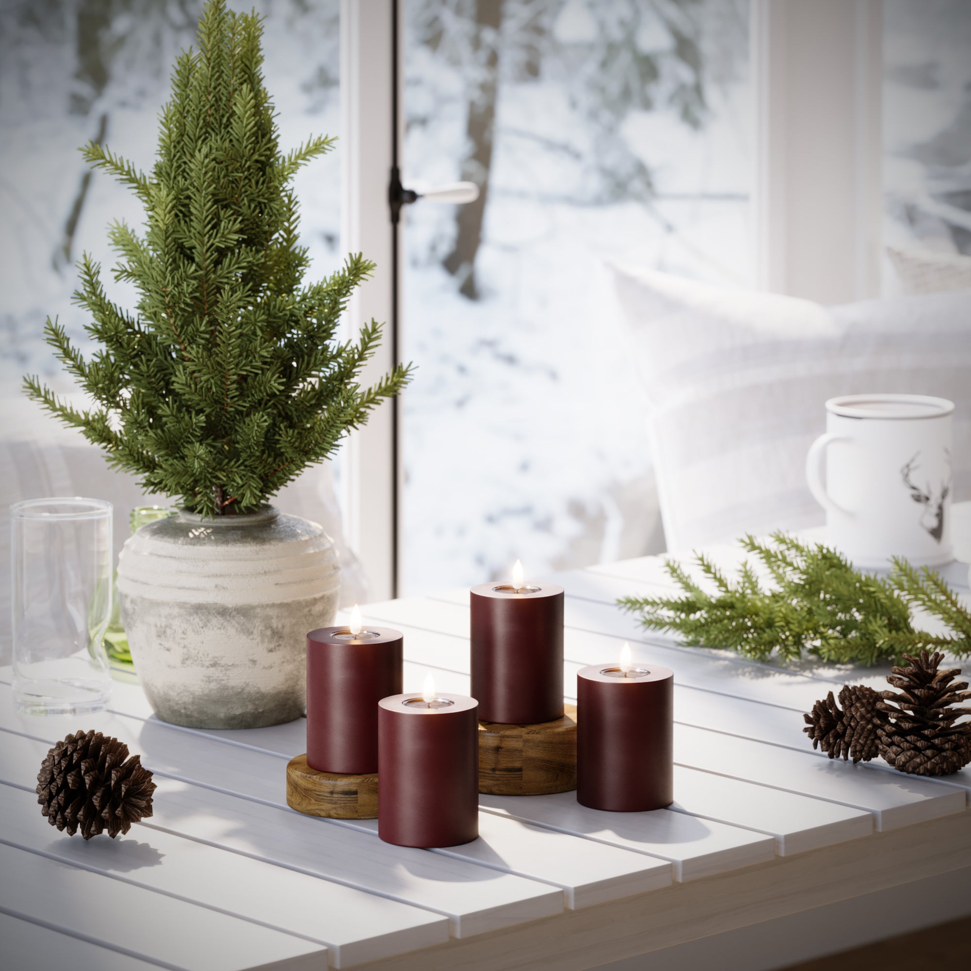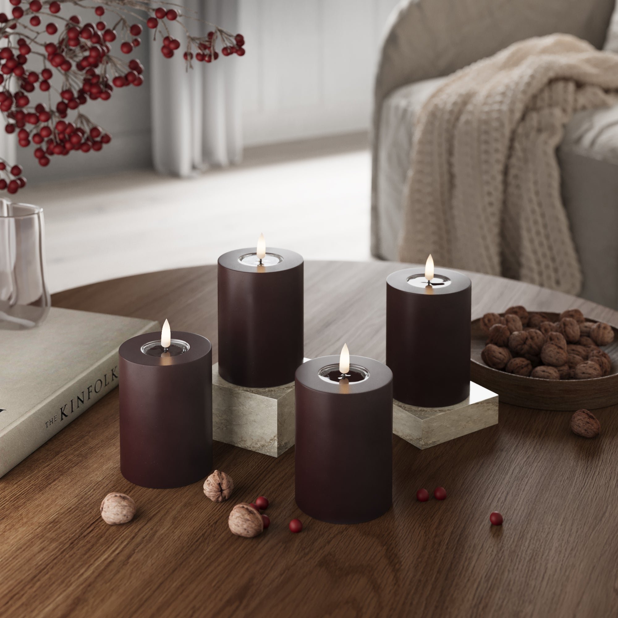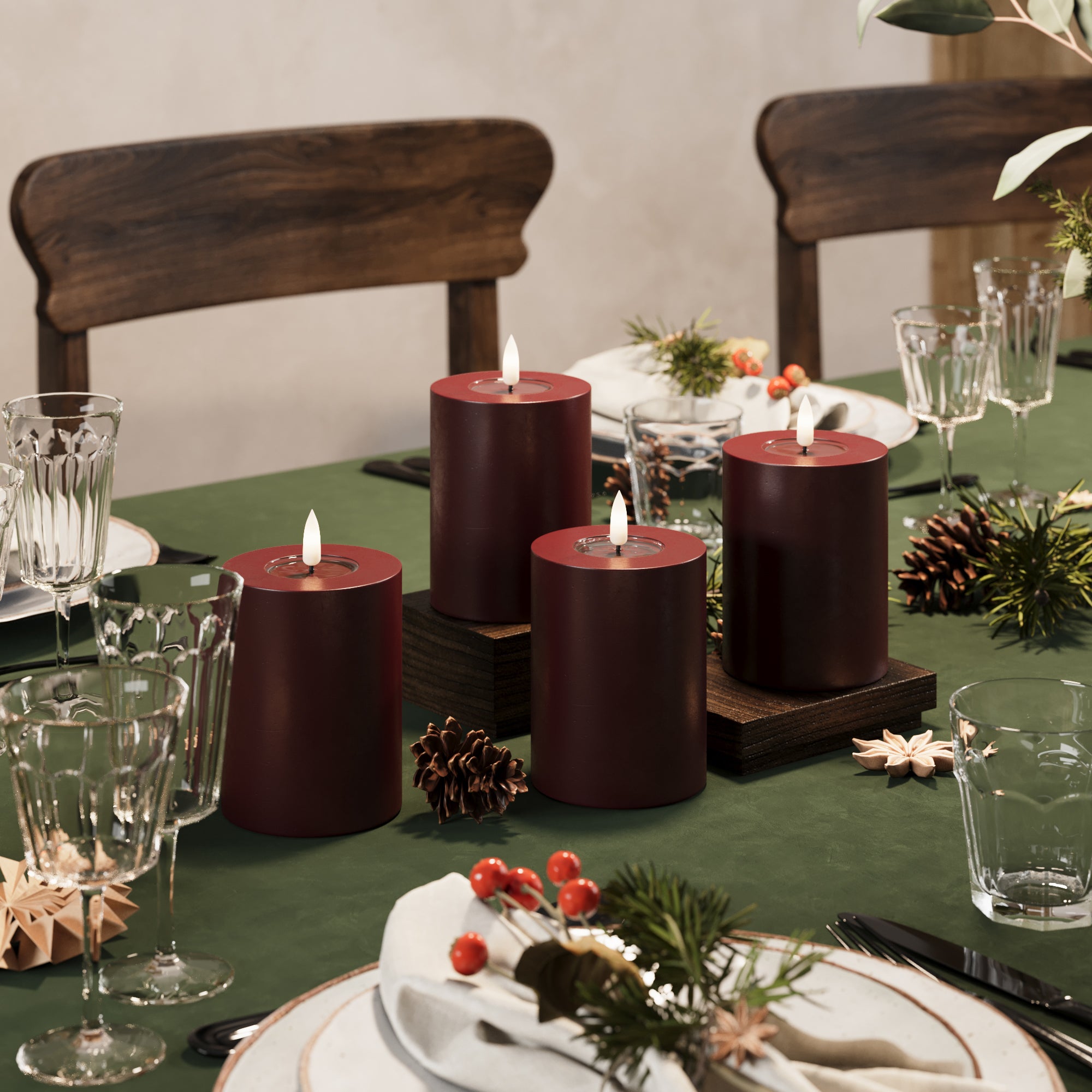 LED Pylväskynttilä Ø 7,5 x 10 cm Burgundi - 4 kpl