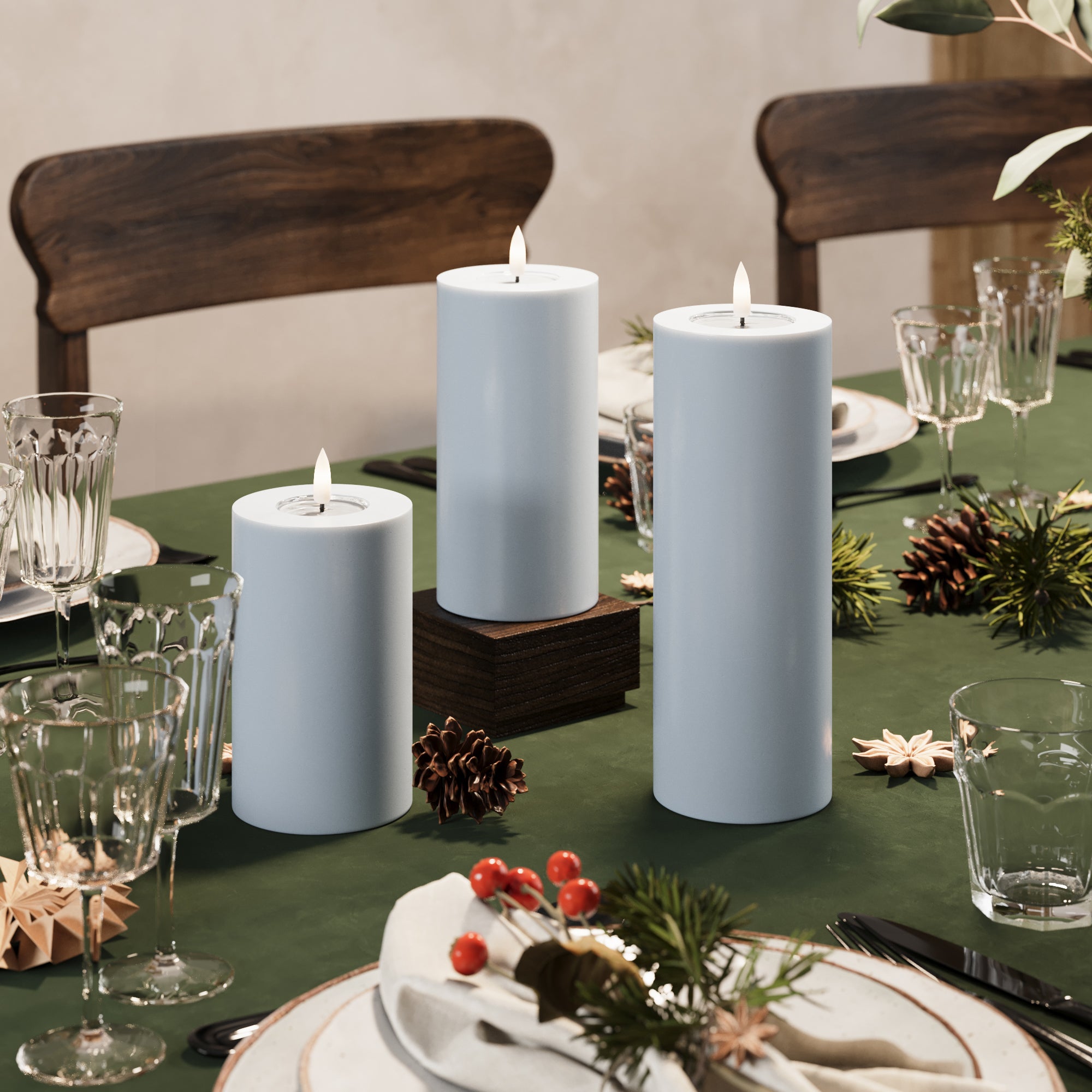 LED Pylväskynttilä Ø 7,5 x 12,5+ 15 + 20 cm - Mist Blue