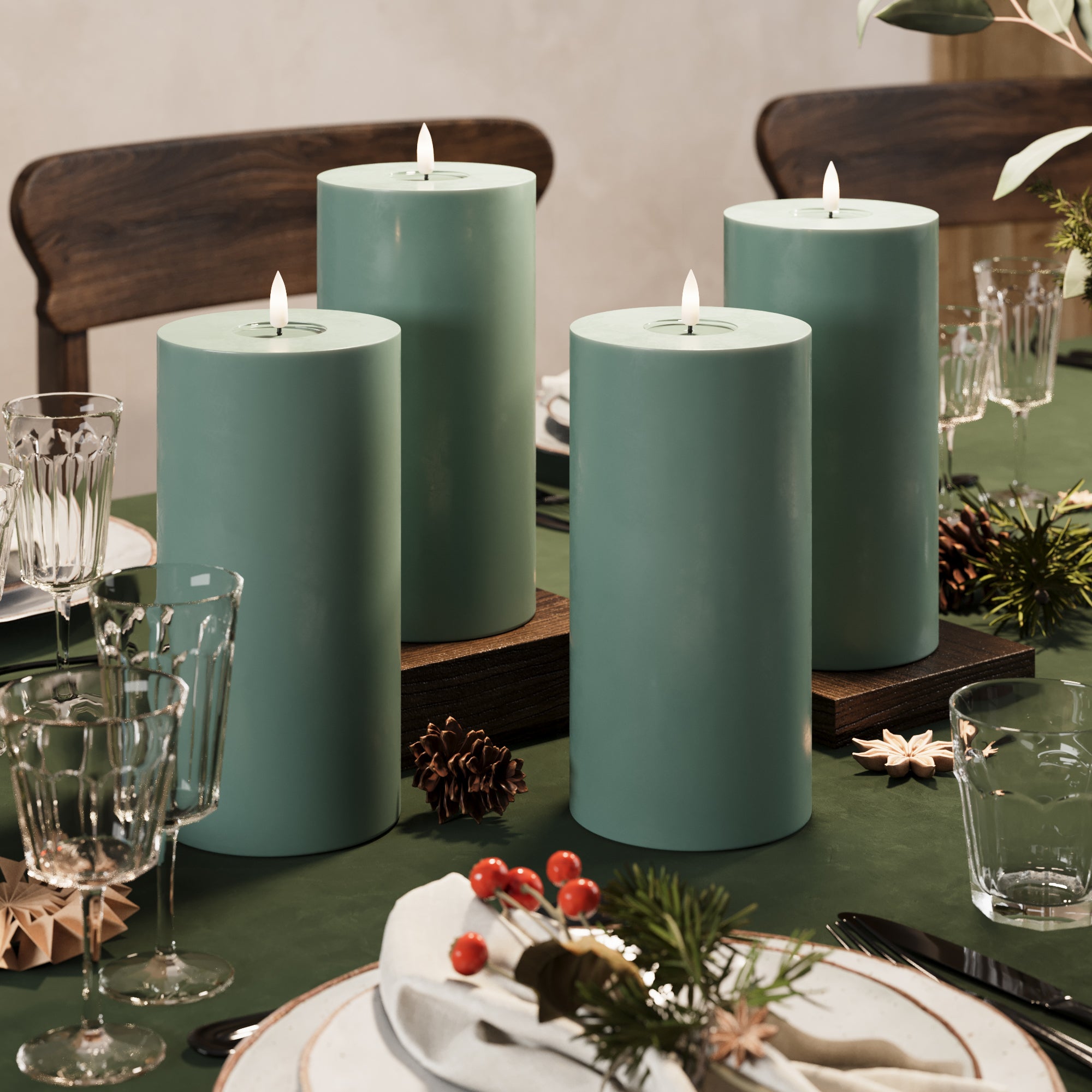 GUIDATO Candela a pilastro Ø 10 x 20 cm Verde giada - 4 pezzi