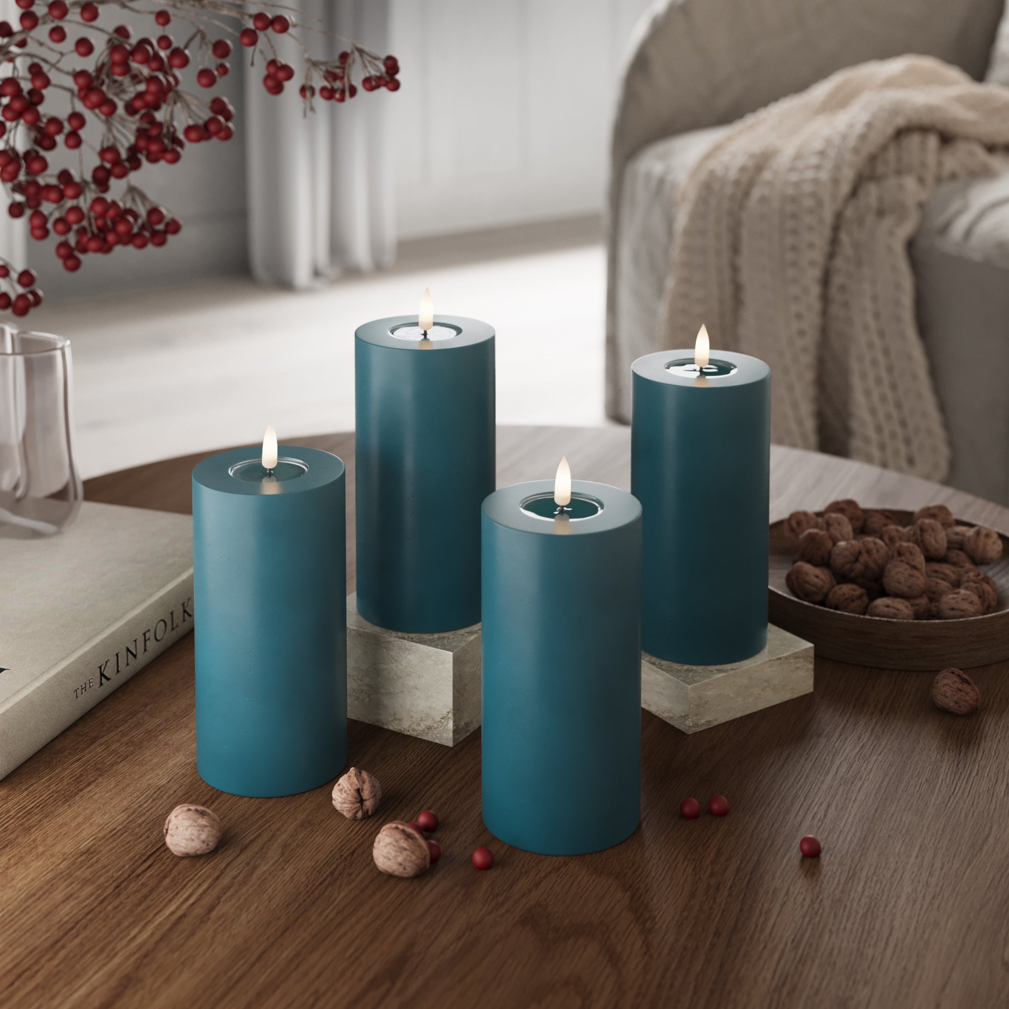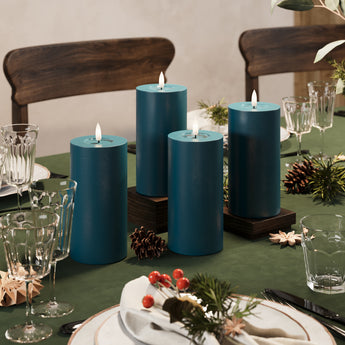 GUIDATO Candela a pilastro Ø 7,5 x 15 cm Petrolio - 4 pezzi
