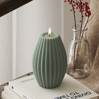 Ten elegancki LED Światło rill w Szałwiowy zielony Oferuje rzeczywisty efekt „prawdziwego płomienia”, który jest równie realistyczny jak prawdziwa świeca. O wysokości 15 cm i średnicy 10 cm LED Rill Light starannie wykonane z świec i żywicy, wyposażone w realistyczny płomień 3D i unikalną powłokę żywicy u góry. Ta szczególna kombinacja nie tylko tworzy autentyczne uczucie, ale także nadaje charakterystyczny „mokry wygląd”, który doskonale naśladuje stopione świece.