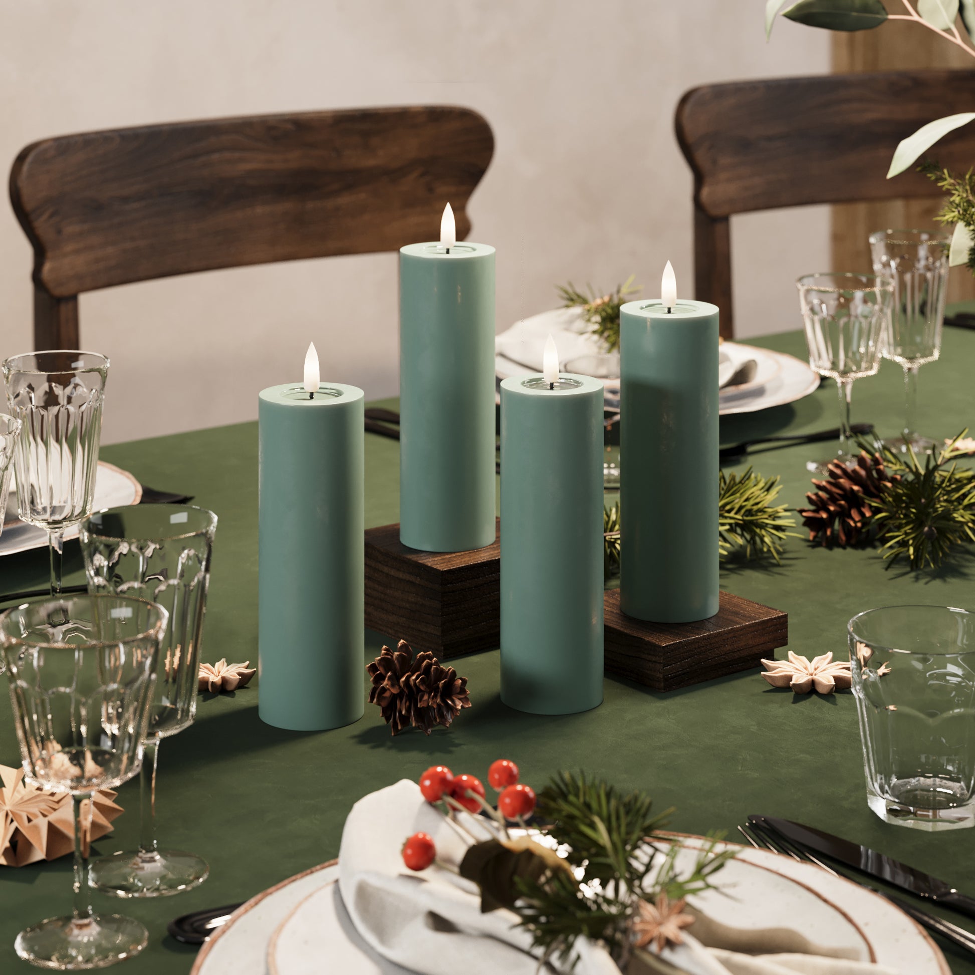 LED Blockljus Ø 5 x 15 cm Jadegrön + 4 st