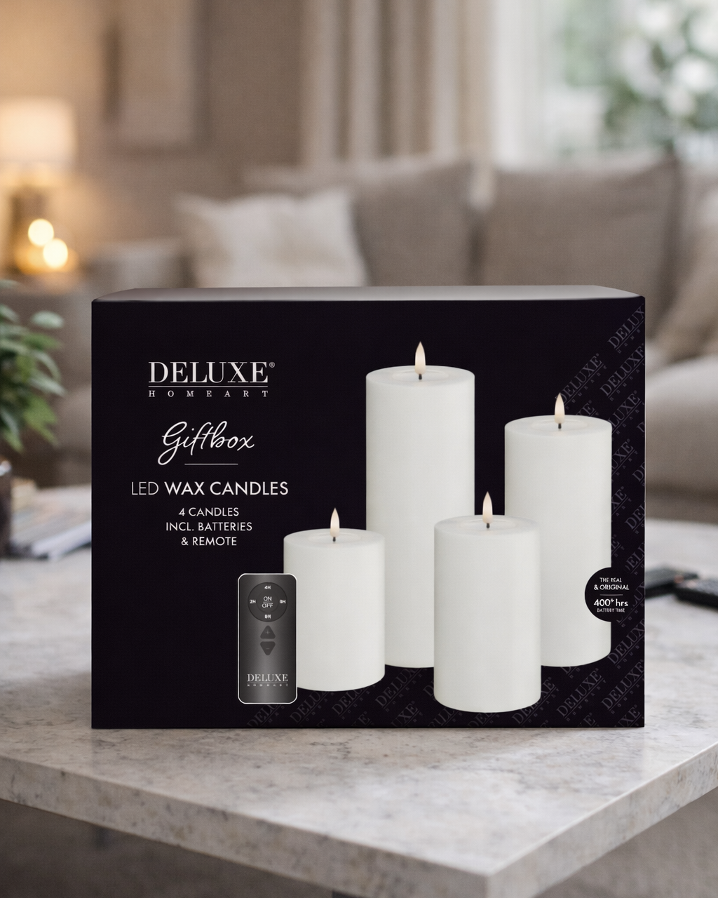 Bloklys gaveæske med fjernbetjening og 4 hvide LED stearinlys Denne bloklys gaveæske med fjernbetjening indeholder...